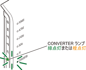 ※CONVERTER ランプが消灯している場合は、子機(CONVERTER)モードに設定されていません。子機(CONVERTER)モードに設定してください。設定方法は、本商品に添付の取扱説明書をご覧ください。