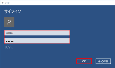 PPTPサーバに設定しているパスワードを入力し、[OK]をクリックします。