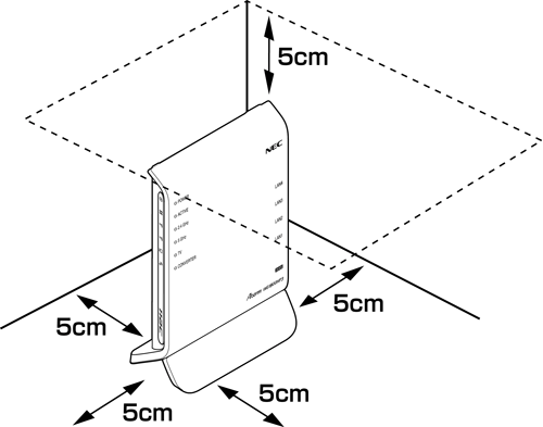 本商品は、前後左右5cm、上5cm以内に、パソコンや壁などのものがない場所に設置してください。