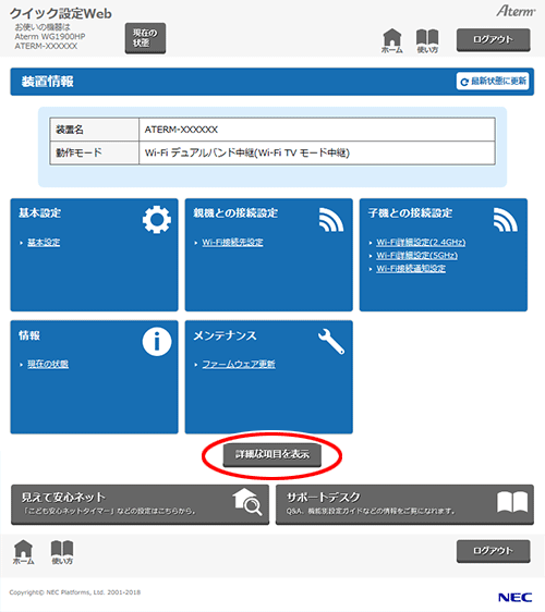 ホーム画面の[詳細な項目を表示]をクリックします。
