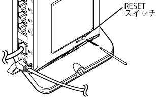 RESETスイッチを細い棒状のもの(電気を通さない材質のもの。つまようじの先など)で押し続け、POWERランプが赤点滅したら放します。