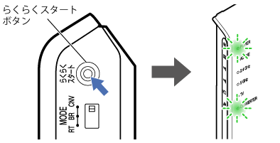 既存の親機のらくらくスタートボタン(WPSプッシュボタン)を押して、WPS機能を起動します。