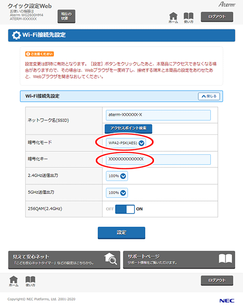 ネットワーク名(SSID):aterm-aaaaaa-g