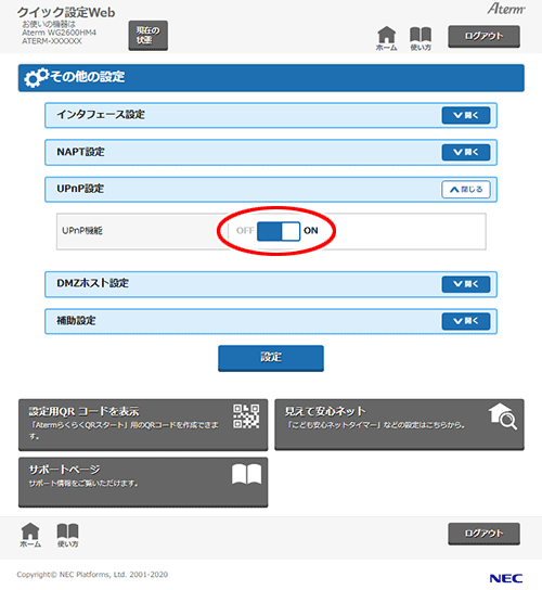 本商品の設定は、工場出荷状態で有効になっていますので、パソコン側でUPnP機能の設定をすることで利用できます。