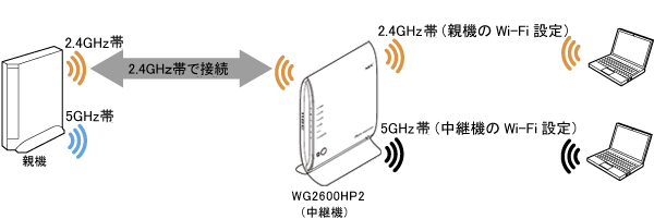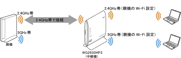 <WPSでデュアルバンド中継機能に対応していない親機とWi-Fi接続した場合>