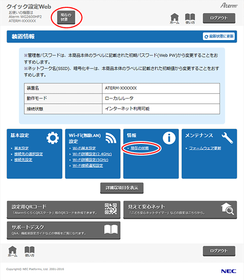 「情報」-「現在の状態」で「DDNS更新状態」に「更新成功(xxx.xx)」と表示されない場合は、下表のエラー内容を確認してください。