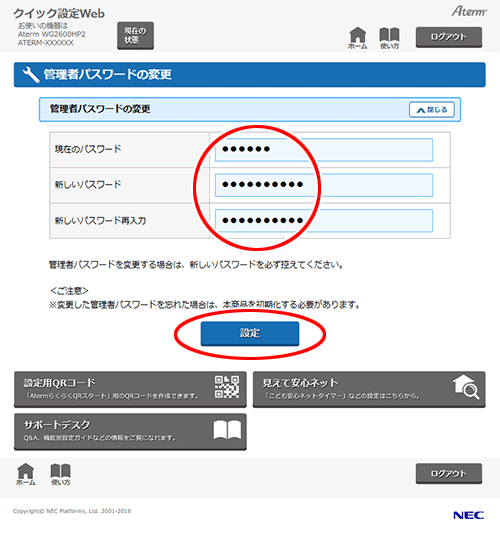 管理者パスワードは、クイック設定Webで本商品の設定をする場合や、不正アクセスを防止するためのパスワードです。