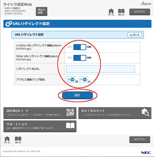 本機能の有効/無効や表示するサイトなどは、クイック設定Webで設定します。