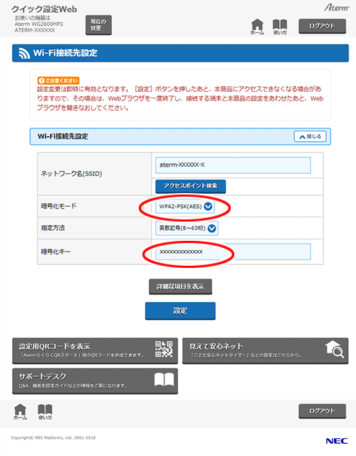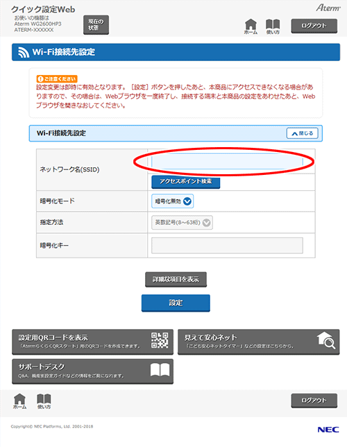 ネットワーク名(SSID):aterm-aaaaaa-g
