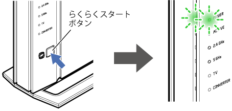 親機のらくらくスタートボタン(WPSプッシュボタン)を押して、WPS機能を起動します。