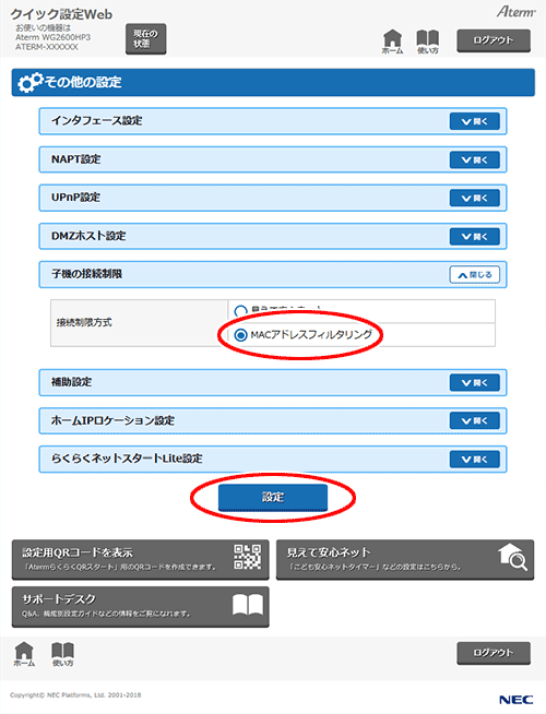・ MACアドレスフィルタリング