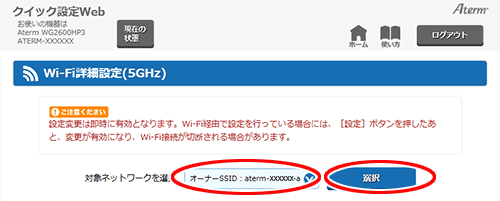 ※ 以下は「Wi-Fi詳細設定(5GHz)」の例です。