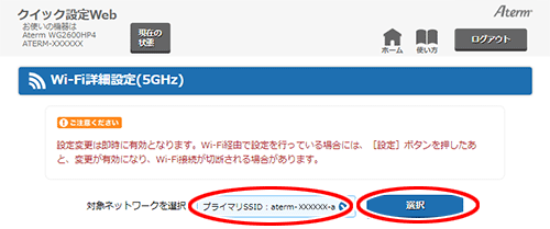 ※ 以下は「Wi-Fi詳細設定(5GHz)」の例です。