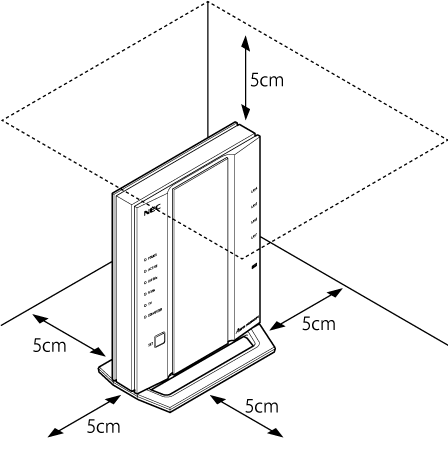 本商品は、前後左右5cm、上5cm以内に、パソコンや壁などのものがない場所に設置してください。