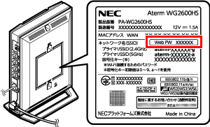 • 管理者パスワードの初期値は、本商品に貼付のラベルに記載された数字6桁のパスワード(Web PW)です。