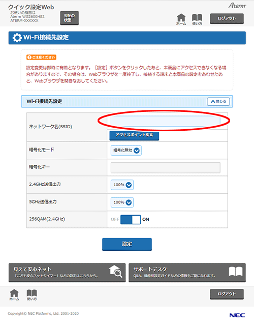 ネットワーク名(SSID):aterm-aaaaaa-g
