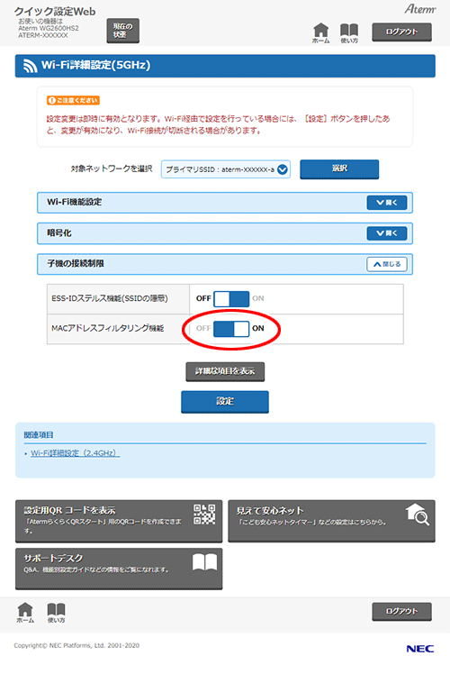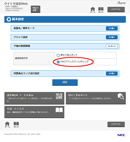 ・ MACアドレスフィルタリング