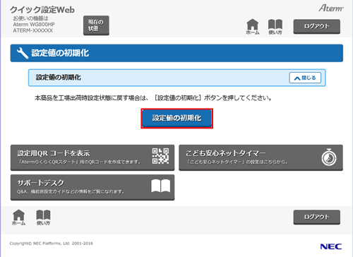 ローカルルータモードで、クイック設定Webによる初期化を行った場合、再起動後は自動的に本商品の工場出荷時のIPアドレス(192.168.10.1)で、クイック設定Web画面が開く場合があります。Internet Explorerをご利用で「JavaScript無効」と表示されて画面が開かない場合は、いったん画面を閉じて開き直すか、JavaScriptを有効にしてください。