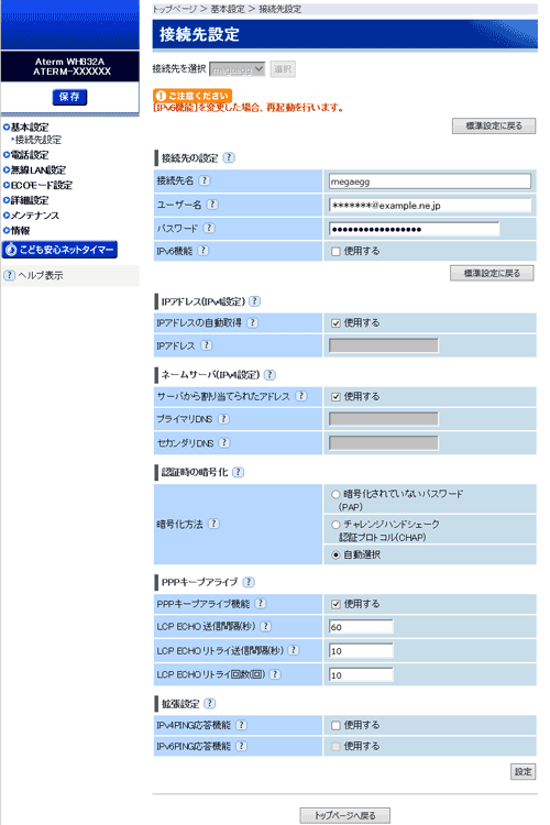 IPv6機能 (初期値:契約によって異なります) |