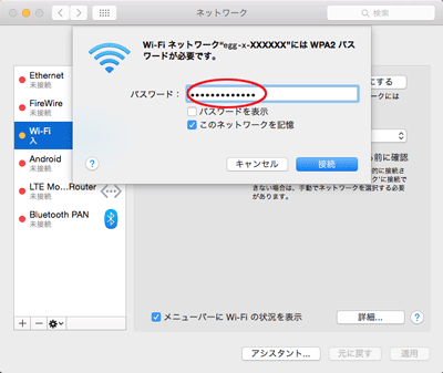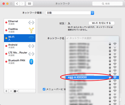 ※[システム環境設定]-[ネットワーク]またはツールバー上のAirMac状況表示からも確認できます。 |
