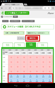 | ■本商品の「こども安心ネットタイマー」の「スケジュール設定」画面 | ||||||||||||||||||||||||||||||||||||||||||||||||||||||||||||||||||||||||||||