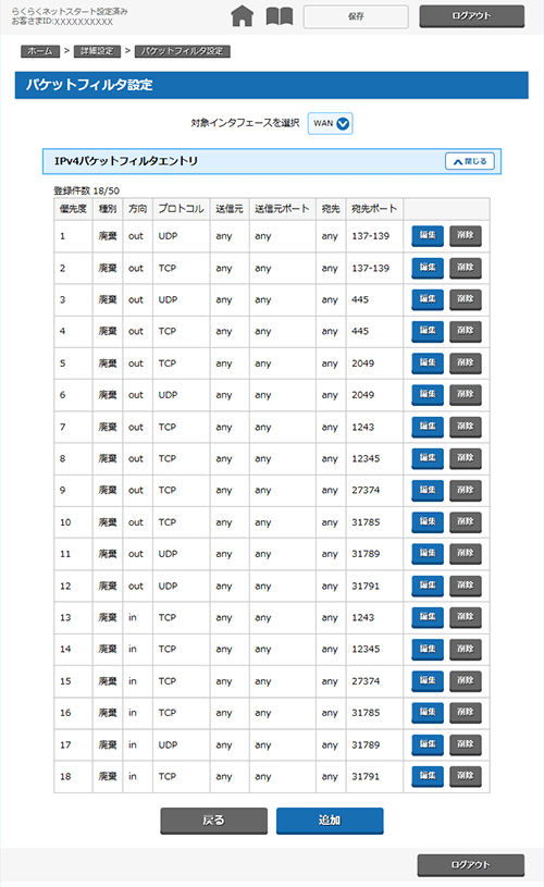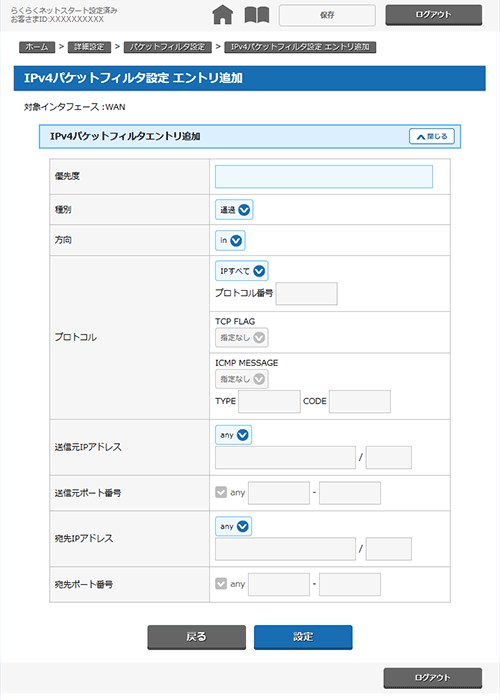 ■IPv4パケットフィルタ設定 エントリ追加