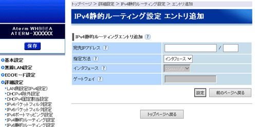 IPv4静的ルーティングを設定します。