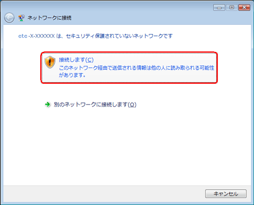 設定内容を変更する場合は、[接続の設定を変更します]をクリックします。 |