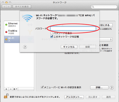 ※[システム環境設定]-[ネットワーク]またはツールバー上のAirMac状況表示からも確認できま す。 |