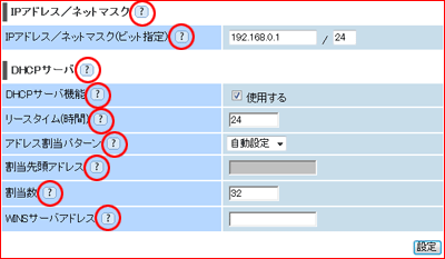 | このボタンをクリックすると、各設定項目の内容や、入力条件(文字数など)が表示されます。 |