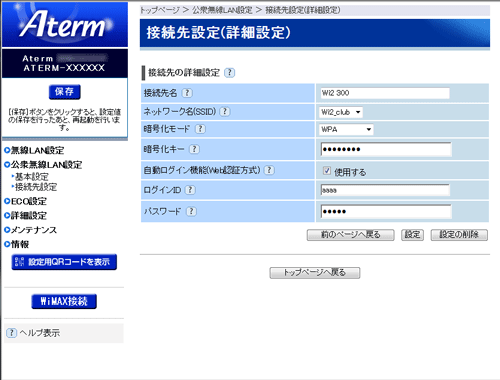 接続先に登録されたアクセスポイントの詳細設定を行います。 |
