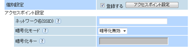 [アクセスポイント設定]をクリックすると、設定項目が表示されます。複数のSSIDを登録することができます。 |