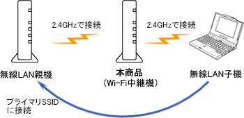 - Wi-Fi中継機で使用できる無線LAN親機のネットワークはプライマリSSIDのみです。