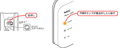 もう一度無線LAN親機のらくらくスタートボタンを長押し(約6秒)、POWERランプが橙点灯になったら放す |