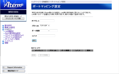 本製品では、「ポートマッピング設定」のエントリを20個まで設定できます。 |