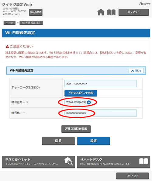 ネットワーク名(SSID):aterm-aaaaaa-2p