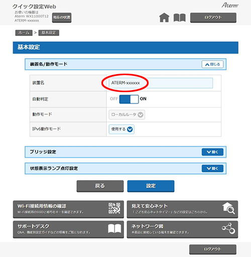 本商品の装置名を変更します。工場出荷状態では、末尾の6桁は本商品のMACアドレスの下6桁が設定されています。