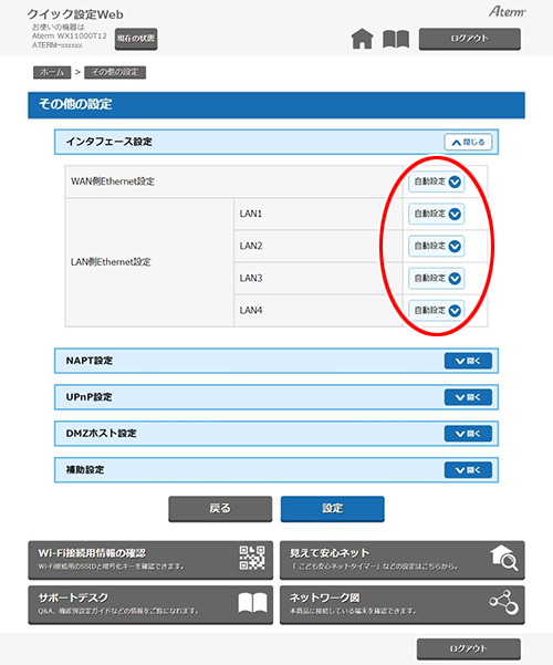 本商品を有線で使用する場合、WANとLANのポート伝送速度、および伝送モードを指定できます。