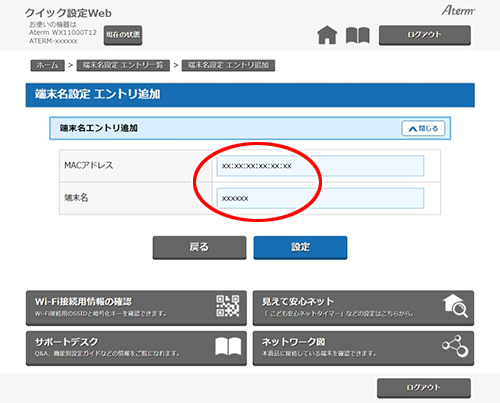 [追加]をクリックします。端末名エントリは10個まで設定できます。