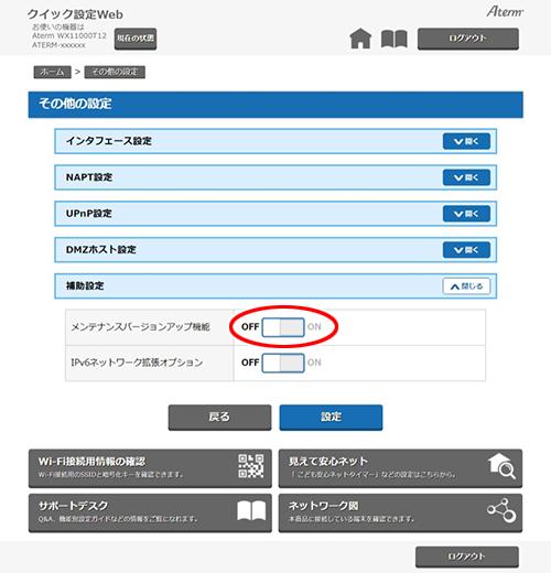 なお、本機能は、クイック設定Webから下記のように設定することができます。