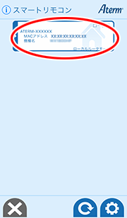 • 本商品と同一ネットワークに、他にも「Atermスマートリモコン」に対応したAterm機器がある場合は、機種名(またはMACアドレス)を確認して選択してください。