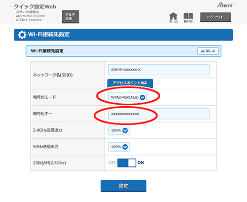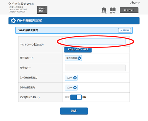 クイック設定Webで設定します。