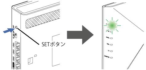 親機のWPSプッシュボタン(SETボタン、無線ボタン、らくらくスタートボタンなど)を押して、WPS機能を起動します。