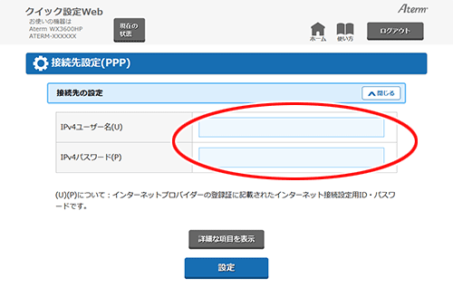 PPPoEルータモードでインターネットに接続するためには、クイック設定Webで設定をする必要があります。