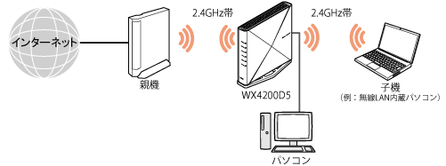 <WPSでデュアルバンド中継機能に対応していない親機とWi-Fi接続した場合>