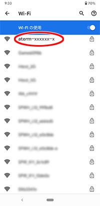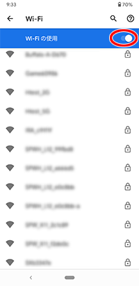 [Wi-Fi]をタップしてから[Wi-Fiの使用]をオンにします。