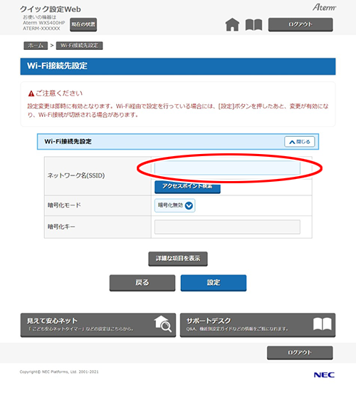 ※ 接続したい親機のネットワーク名(SSID)が表示されない場合は、親機に設定されているWi-Fiのステルス設定を解除してから、再度本設定を行ってください。