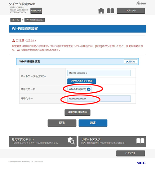 ネットワーク名(SSID):aterm-aaaaaa-g