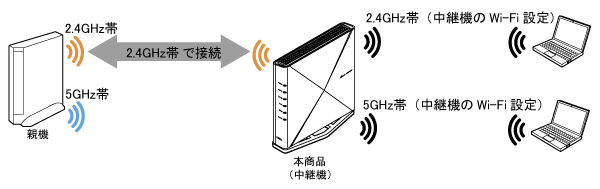 <WPSでデュアルバンド中継機能に対応していない親機とWi-Fi接続した場合>