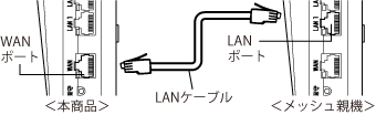 本商品をメッシュ中継機として使用するには、メッシュ親機とWi-Fi接続します。また、有線接続でメッシュ親機と接続することも可能です。